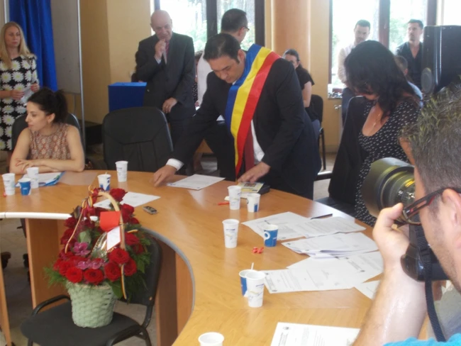 Sala a fost plină, salariaţii primărieii fiind, din motiv de invitaţi, mutaţi de la locul obişnuit, la „şi alţii“. Cu puţin timp înainte de începerea şedinţei cineva a intrat cu un coş de flori, trandafiri roşii care încadrau o icoană, stârnind curiozitate în sală. „I-aţi adus voi?“, au fost interpelaţi peneliştii primii. Misterul l-a elucidat bileţelul pe care stătea scris„Dumnezeu să te bincuvânteze! Mama“. Iar mama noului primar chiar a venit să-l susţină, ca şi şefii de la PSD.