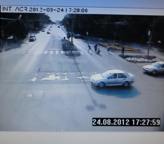 Din imaginile filmate se observă cum un tânăr şi două femei se angajează în traversarea străzii; la jumătatea trecerii de pietoni, un bărbat care traversează din sens opus se repede brusc la gâtul uneia dintre femei şi îi smulge un lănţişor (de aur, n.a.) şi fuge. Un echipaj mobil al Poliţiei Locale Slatina, aflat întâmplător în zonă, opreşte preţ de câteva secunde lângă cele două femei pentru a afla ce s-a întâmplat, apoi porneşte în urmărirea suspectului.