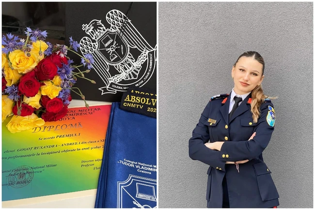 Ruxandra Gogoț a absolvit în această vară Colegiul Militar „Tudor Vladimirescu” din Craiova. A urmat Bacalaureatul, alte emoții și pentru asta, iar după „examenul maturității”, admiterea la Academia Forțelor Aeriene „Henri Coandă” din Brașov. Cea mai mare dorință a fost să fie prima admisă la academie, iar anii de efort au condus-o către asta. Sunt, în fapt, două medii egale, a ei și a unui alt coleg de liceu, în total patru „vladimirești” ocupând primele locuri în ierarhie la admiterea la academia din Brașov, spune tânăra.
