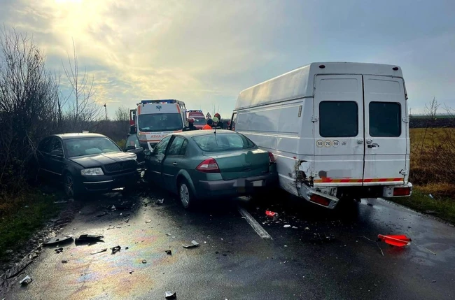 0Trei persoane au fost rănite luni, 29 noiembrie, în jurul orei 13.30, într-un accident rutier petrecut pe DJ 203 B. Două autotutirsme şi o aoutoutilitară au fost implicate în coliziune.