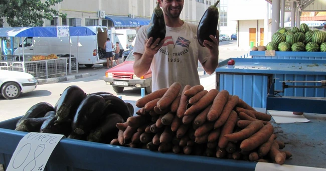 De al aceeaşi tarabă a luat şi vinetele pentru zacuscă, la preţul de un leu kilogramul, gogoşarii şi castraveţii pentru murături, ce costau între 1,5 şi 3 lei kilogramul, dar şi varza murată, care se vindea la preţul de 2,5 lei kilogramul.