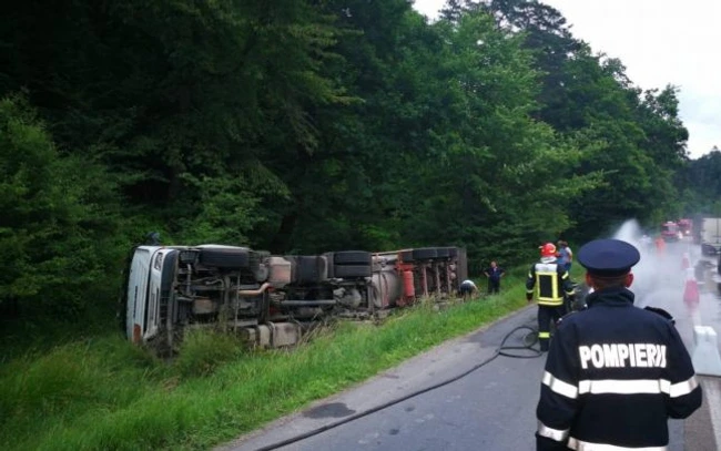 Trafic reluat pe DN21 după tamponarea dintre o cisternă cu gaz şi un autoturism