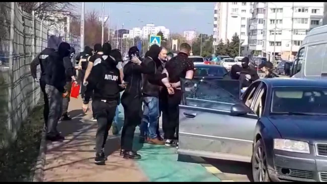 Unul din traficanți a fost urmărit în trafic, blocat de polițiști și încătușat în plină stradă.