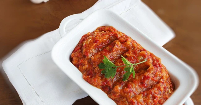 Vinetele se toacă mărunt. Ardeiul se toacă sau se bagă la blender, depinde de gust. Se amestecă cele două legume, după care se adaugă puţină sare. Usturoiul pistat mărunt cu sare mare se încorporează în pasta obţinută din ardei şi vinete, după care se adaugă uleiul.