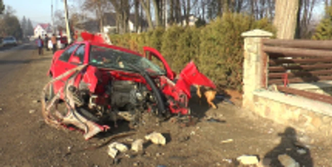 Doi tineri în stare gravă şi o maşină transformată în morman de fiare contorsionate din cauza vitezei excesive