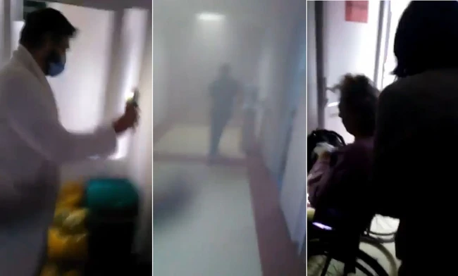 În înregistrarea video publicată de televiziunea Intermedia se observă cum salvatorii, angajaţi ai spitalului, pompieri şi poliţişti locali, se deplasează pe holul unei secţii şi prin saloane pentru a-i evacua pe pacienţii internaţi.