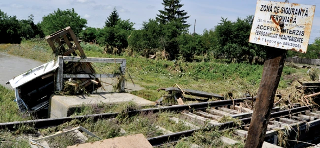 Pe această rută, calea ferată a fost stricată tot de viiturile inundaţiilor.