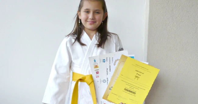 Îmbrăcată în chimono, Ioana pare mai degrabă o balerină. Sprintenă şi hotărâtă, a reuşit performanţa ca la doar 10 ani să fie în finalele Concursului Naţional de Judo doi ani la rând.