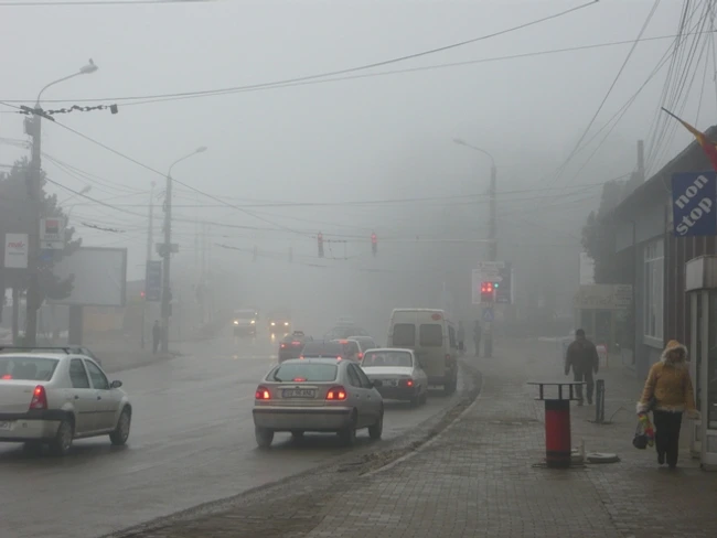 Traficul rutier se desfăşoară la această oră cu greutate din cauza ceţii care s-a lăsat încă de dimineaţă peste municipiu.
