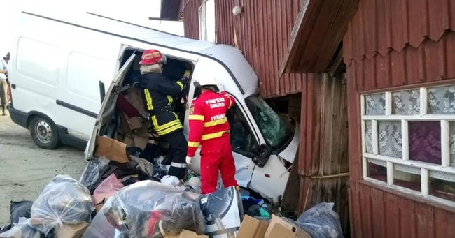 Un microbuz de marfă a ieşit în afara părţii carosabile şi a intrat într-o casă