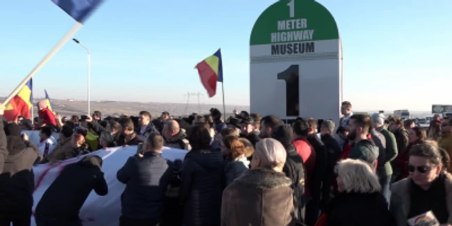 La protestul care a avut loc vineri, 24 ianuarie, în localitatea Cumpărătura, din judeţul Suceava, la singurul metru de autostradă din Moldova, au participat câteva sute de persoane, şoferi şi pietoni deopotrivă. Au fost prezenţi şi reprezentanţi ai Asociaţiilor transportatorilor din Moldova.