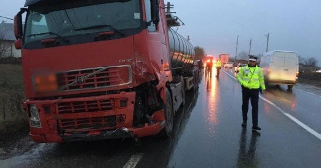 Un bărbat de 40 de ani, pe fondul neacordării de prioritate, a intrat în coliziune cu o autocisternă încărcată cu bitum care circulă regulamentar pe direcţia Ploieşti -Târgovişte.