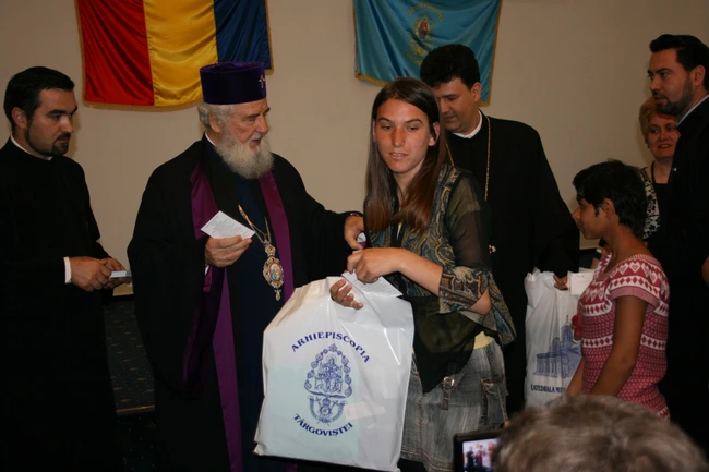 0În apropierea sãrbãtorii Învierii Domnului, Înaltpreasfinţitului Pãrinte Arhiepiscop şi Mitropolit Nifon, a oferit vineri, la sediul Centrului Eparhial al Arhiepiscopiei Târgoviştei, daruri la 85 de copii de la Complexul de Servicii Sociale “Floare de Colţ” din Târgovişte, constând, în articole vestimentare sportive.