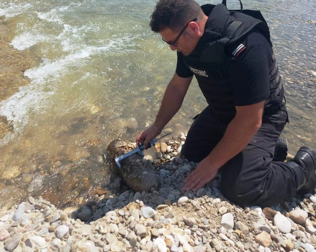 Un bărbat a observat un element de muniţie pe malul apei, vizibil după eroziunea unui dig.