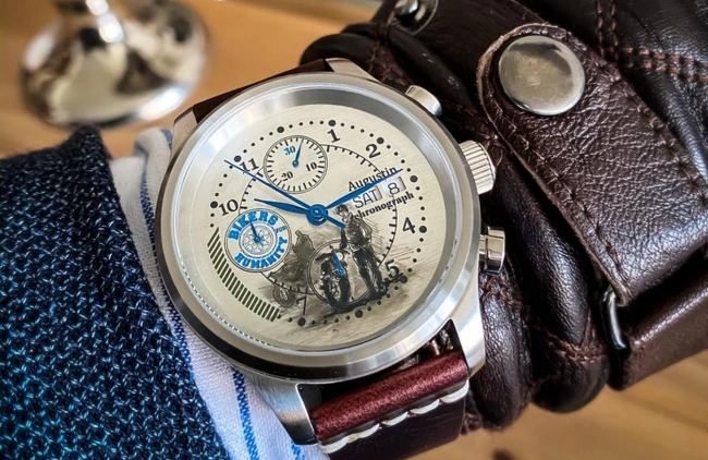 0Augustin Matei, designer de ceasuri unicat, a scos la licitaţie un ceas special pentru comunitatea de bikeri din România. Preţul de pornire este de 12.000 de lei, iar banii obţinuţi vor fi donaţi către Bikers for Humanity, comunitatea împătimiţilor de motoare pentru organizarea evenimentelor viitoare.