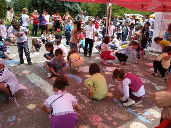 0120 de copii de la mai multe şcoli din Târgovişte au participat la concursul de desene pe asfalt, gândit de plasticiana Roxana Negoescu şi pus în practică în colaborare cu Primăria Municipiului.