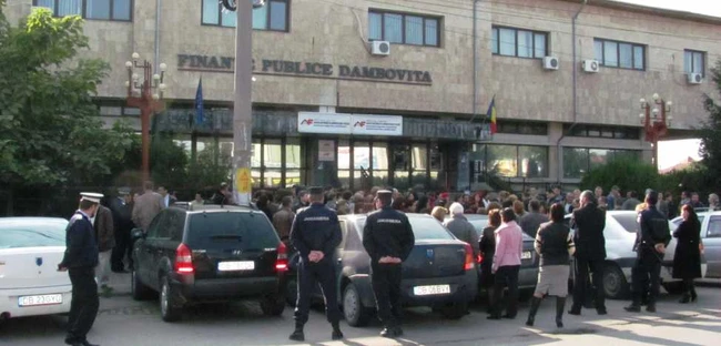 Direcţia Finanţelor Publice Dâmboviţa este goală. Toţi angajaţii protestează în stradă