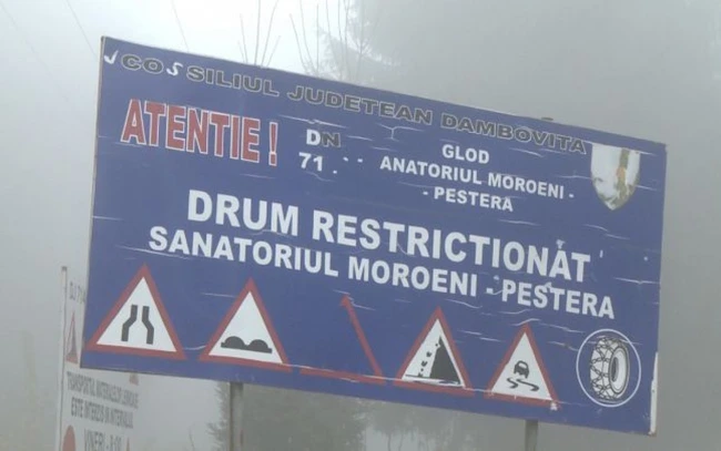 - Deplasarile pe traseul DJ 714 Glod – Sanatoriul Moroieni – Pestera se vor realiza numai cu autovehicule de teren si echipate cu dispozitive antiderapante. De asemenea, recomandam a nu se face deplasari în aceasta zona în perioadele în care sunt cantitati importante de precipitatii sub forma de zapada, lapovita sau ploaie.