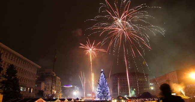 Sute de târgovişteni au ales să petreacă de Anul Nou în centrul oraşului. Municipalitatea nu a oferit un concert însă cerul a fost luminat de artificii, iar toată suflarea s-a strâns în orăşelul lui Moş Crăciun de la Prefectură.