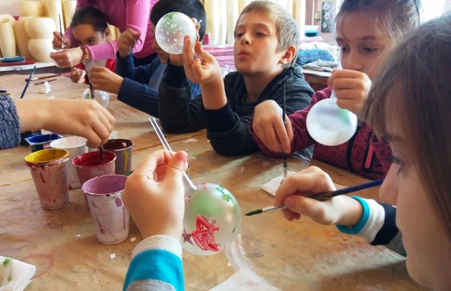 „Noi am început să primim copiii încă din octombrie, pentru că sunt şcoli din Buzău, Bucureşti, Ploieşti sau Piteşti care au activitate în programul «Şcoala Altfel» şi ei şi-au programat de câteva zile aceste ateliere. Din noiembrie am primit copii zi de zi, iar în decembrie avem chiar mai multe cluburi de copii din ţară“, spune Constantin Casandroiu, administratorul atelierului de globuri.