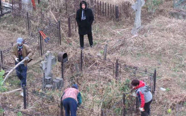 Zeci de angajaţi ai Direcţiei de Salubritate din cadrul Primăriei Târgovişte lucreză de zile bune la igienizarea cimitirelor din oraş. Oamenii sunt înarmaţi cu drube, coase şi greble. Conducerea instituţiei spune că vrea să cureţe toate cimitirele înainte de căderea primilor fulgi de nea.