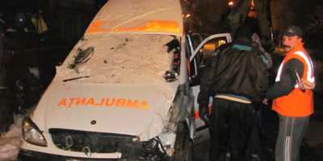 NEWS ALERT Unde primăria nu îşi face treaba, plăteşte ambulanţa. O salvare a intrat într-un stâlp din cauza gheţii de pe asfalt.