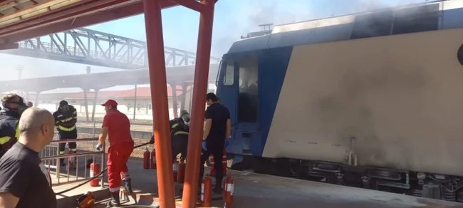 Incendiu la locomotiva unui tren Foto ARHIVĂ