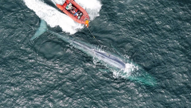 Experimentul a fost realizat de echipa Universităţii din Stanford. Cercetătorii au apelat la un soi de ventuze, pe care le-au aplicat de înotătoarea stânga a uriaşului mamifer marin, cu ajutorul cărora au amplasat de animal senzori electronici.