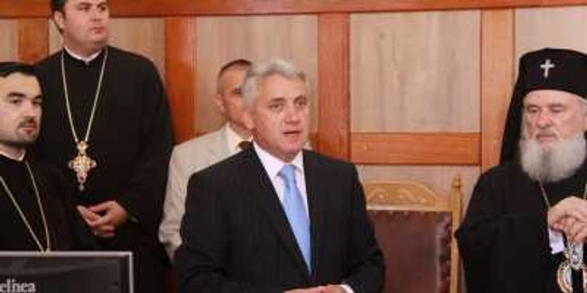 Arhiepiscopul şi Mitropolitul Târgoviştei, ÎPS Nifon Mihăţă, nu a ratat momentul şi a ţinut să fie aproape de noul preşedinte al Consiliului Jdueţean, căruia i-a dăruit o biblie şi o icoană.