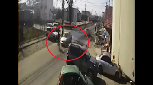 Camerele de supraveghere au înregistrat momentul în care biciclistul schimbă banda fără să se asigure.