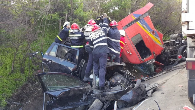 O femeie în vârstă de 33 de ani, un bărbat în vârstă de 38 de ani şi doi copii cu vârste cuprinse între trei şi cinci ani, familie din Craiova, au murit, după ce autoturismul în care se aflau a fost lovit de un TIR, luni după-amiază, pe DN 65 la Pădurea Sarului.