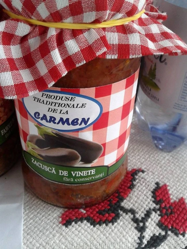 „Nu că le fac eu, dar conservele şi zacusa sunt unele dintre cele mai bune de pe piaţă. Mai fac şi dulceţuri din fructe de pădure, gutui, de ardei iute. Legumele şi fructele sunt 100% naturale. Zacusca are totul copt şi gătit la foc de lemne, ardei kapia şi gogoşari copţi, ceapă, morcovi, roşii culese toate din grădina proprie, vinete, peşte - macrou, ghebe, bureţi şi altele”, spune doamna Carmen Casandrescu, 58 de ani.