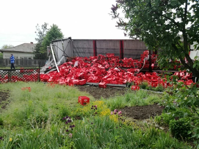 TIR încărcat cu bere, răsturnat lângă Penitenciarul Mărgineni