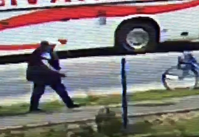 În filmare se observă cum un individ opreşte bicicleta, ia portofelul, îl bagă în buzunar, după care pleacă.
