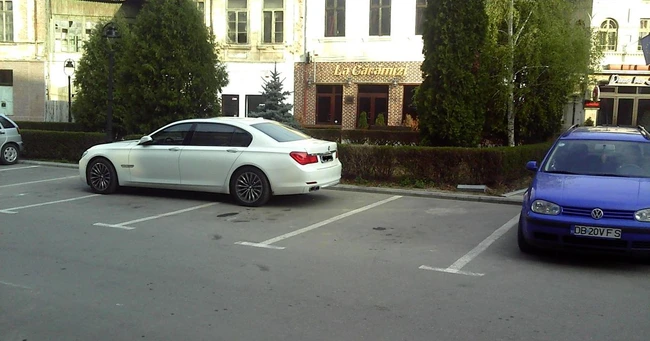 Un şmecher cu BMW, din Târgovişte, a parcat pe trei locuri, chiar în faţa primăriei