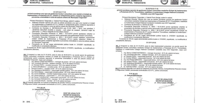 UPDATE: Lista norocoşilor din Primăria Târgovişte care primesc stimulente datorită proiectelor europene