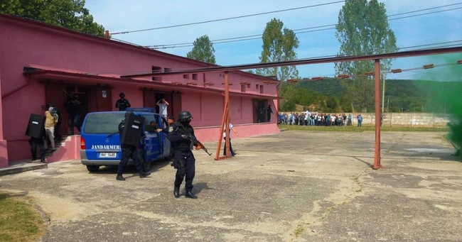 ''Exerciţiul demonstrativ care s-a desfăşurat astăzi a fost inclus în scenariul exerciţiului mare. În cadrul lui au acţionat peste 150 de jandarmi plus reprezentanţi ai MapN, o grupare care se ocupă de identificarea şi neutralizarea explozibililor dispozitive improvizate. În cadrul exerciţiului, s-a intervenit cu un elicopter pentru evacuarea unor persoane rănite'', a declarat, purtătorul de cuvânt al Jandarmeriei Române, Irina Drăgan.