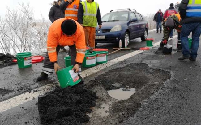 Metodă revoluţionară de reparaţie a gropilor a fost brevetată în Austria şi acum este experimentată şi în România, pe banii firmelor străine.