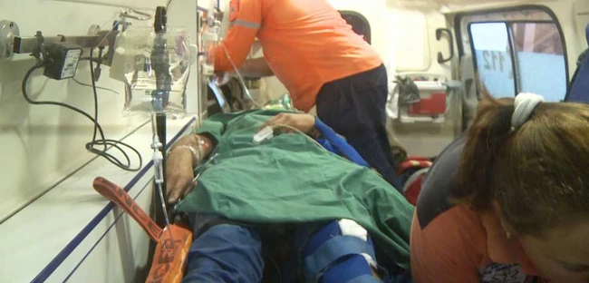 "Este conştient. A zis că a fost bătut în tren şi aruncat, între Ghergani şi Bâldana. Poate să comunice. Prezintă politraumatisme şi fracturi", spun medicii de pe Ambulanţă.
