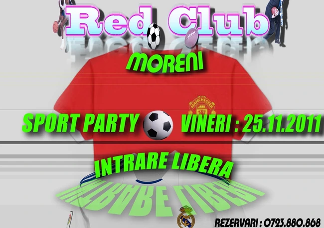 Red Club din Moreni anunţă pentru vineri, 25 noiembrie, Sport Party. Cei care vin îmbrăcaţi corespunzător, au anunţat organizatorii, vor fi premiaţi. Pe scurt: îmbrăcăminte comodă, oferte la bar şi ca distracţia să nu fie ştirbită, intrarea este liberă.