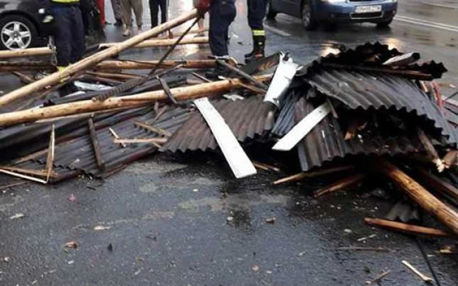 De asemenea, în Târgu Jiu, acoperişul unei case a fost doborât de vântul puternic.