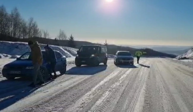 Există un filtru al poliţiei pentru a verificat autovehiculele care urcă la Rânca, dacă sunt dotate cu lanţuri sau au tracţiune integrală.