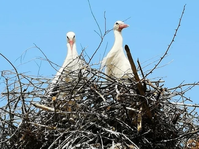 0Un tânăr din comuna Câlnic, judeţul Gorj, a montat pe doi stâlpi de iluminat cuiburi pentru berze, iar frumoasele păsări nu au întârziat să apară.