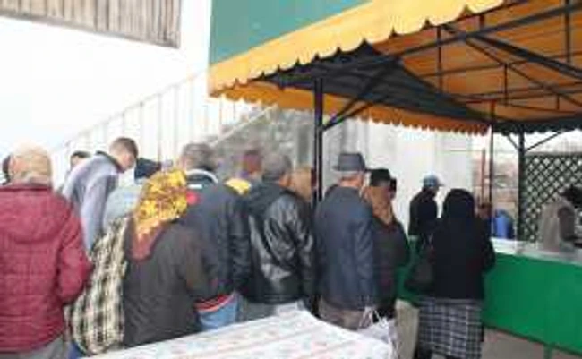 0Participanţii au stat la rând pentru o porţie de peşte cu mămăliguţă