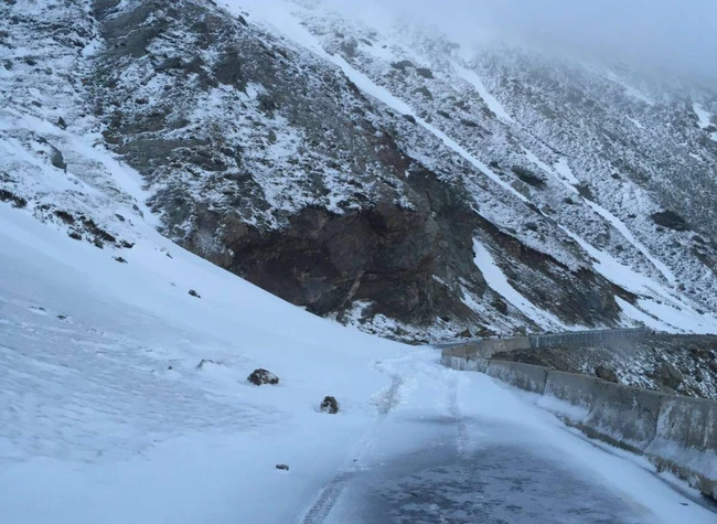0Cea mai înaltă şosea din ţară este în continuare impracticabilă, pentru că, la înălţimi de peste 2.000 de metri, drumul este acoperit cu zăpadă şi carosabilul este plin cu bolovani căzuţi de pe versanţi.