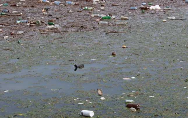 Printre gunoaiele de pe lacul de acumulare, vieţuiesc două lebede şi numeroase lişiţe.
