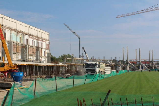 FOTO Se lucrează intens la noul stadion din Târgu Jiu. Stadiul de execuţie a lucrărilor a depăşit 40%