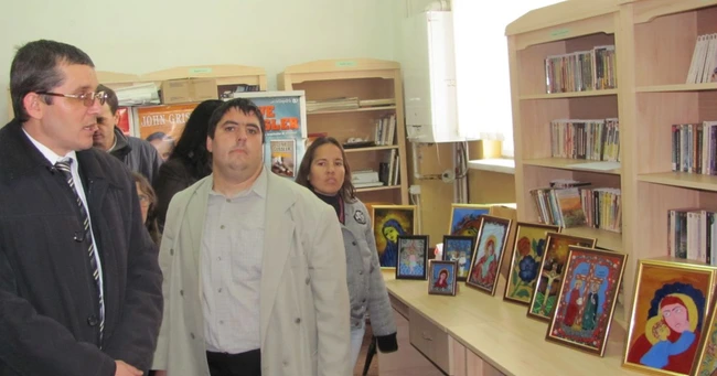 0Expoziţia «Culoare şi Speranţă pentru Suflet», care cuprinde 20 de icoane pe sticlă realizate de şapte persoane cu handicap, a fost vernisată, astăzi, în cadrul Bibliotecii Judeţene «Christian Tell».