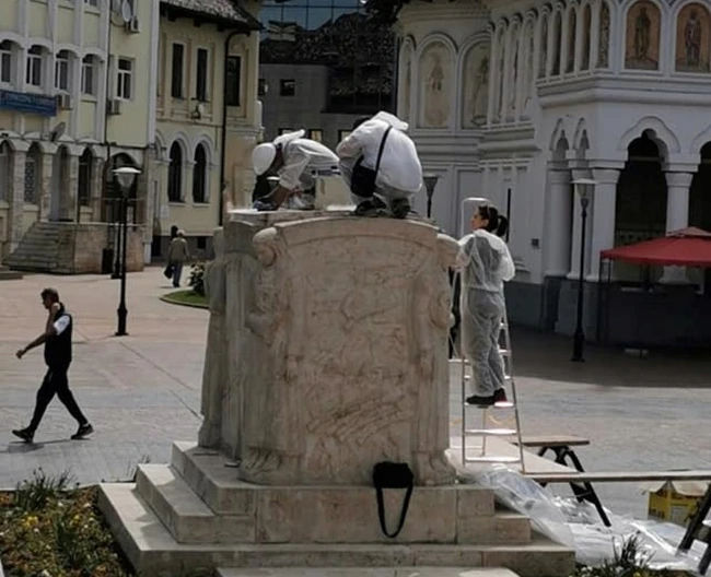 Lucrări de restaurare la mausoleul din Târgu Jiu, unde se află rămăşiţele pământeşti ale Ecaterinei Teodoroiu