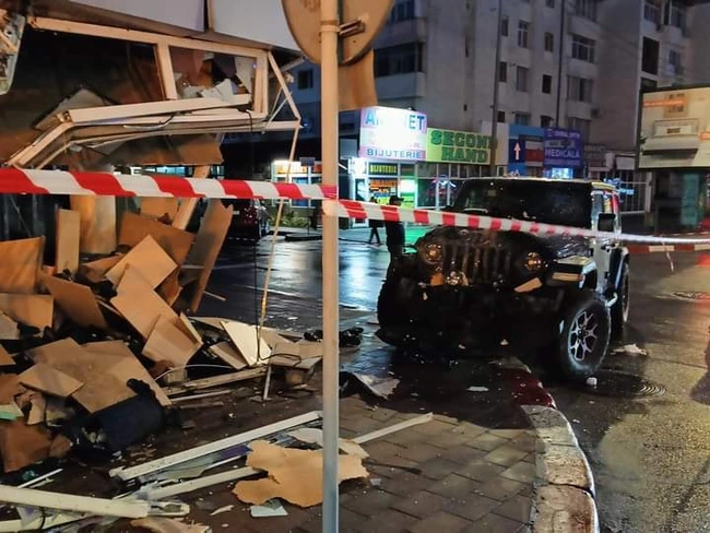 Magazin de haine second hand din centrul municipiului Târgu Jiu, distrus de o mașină de teren condusă de un șofer beat